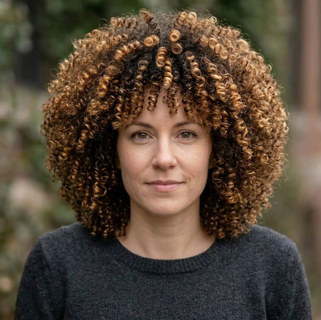 High-shine, springy coils with a multi-dimensional finish and a rounded, orbital shape for maximum volume.Our advanced AI generator lets you try out the Celestial Coils look instantly. See if it is the right choice for you before making a commitment at the salon.